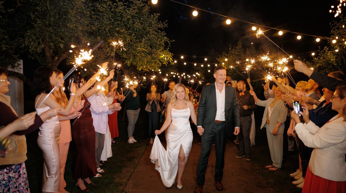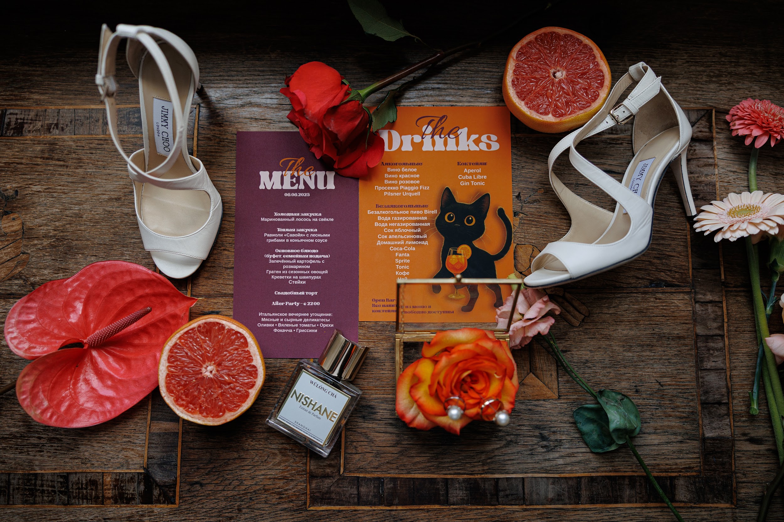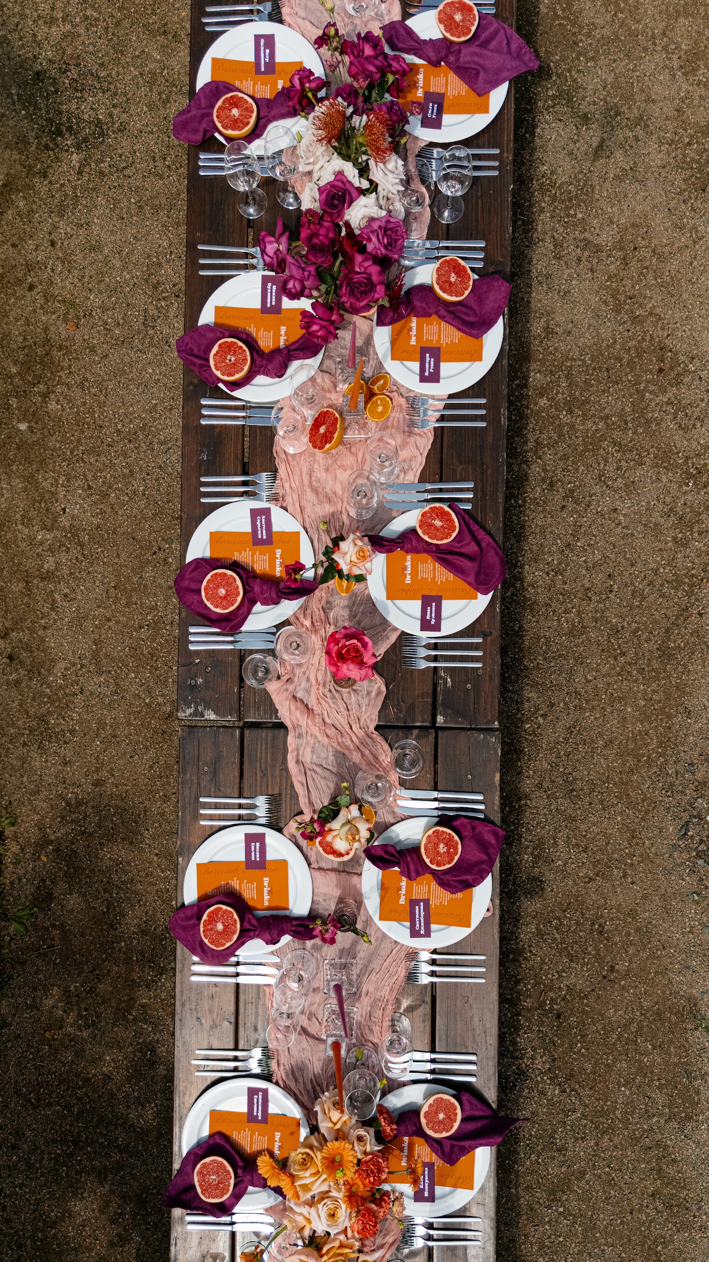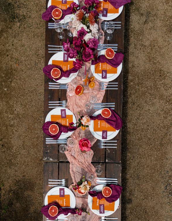 В основе этой свадьбы — лёгкость, яркость и искренность. Подготовка прошла почти невесомо: ребята с первых звонков были открыты к смелым решениям и полностью доверились процессу. Вместо привычной пастельной палитры мы выбрали насыщенные цвета, добавили в декор грейпфруты и сделали ставку на живость, летнее настроение и энергию праздника.