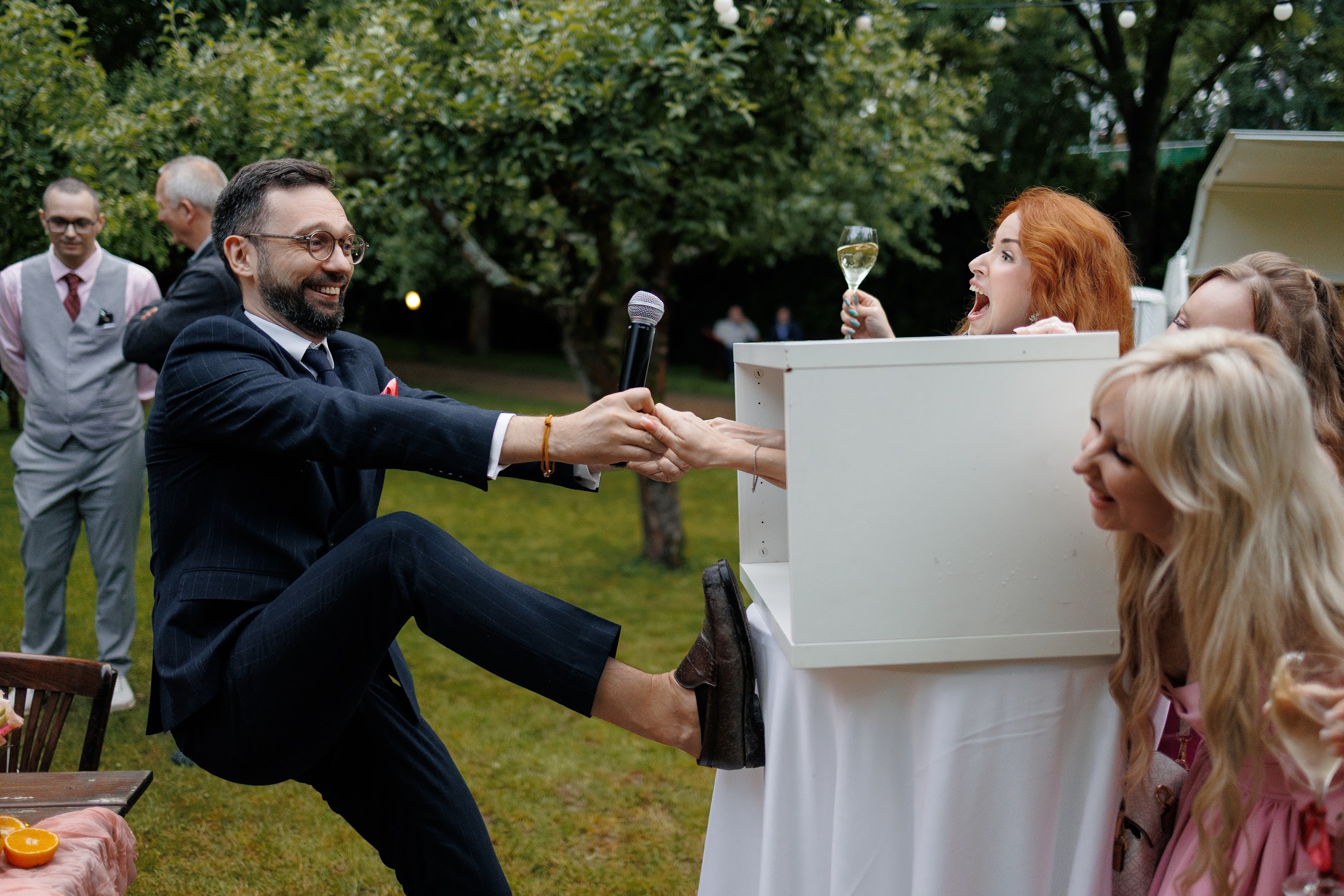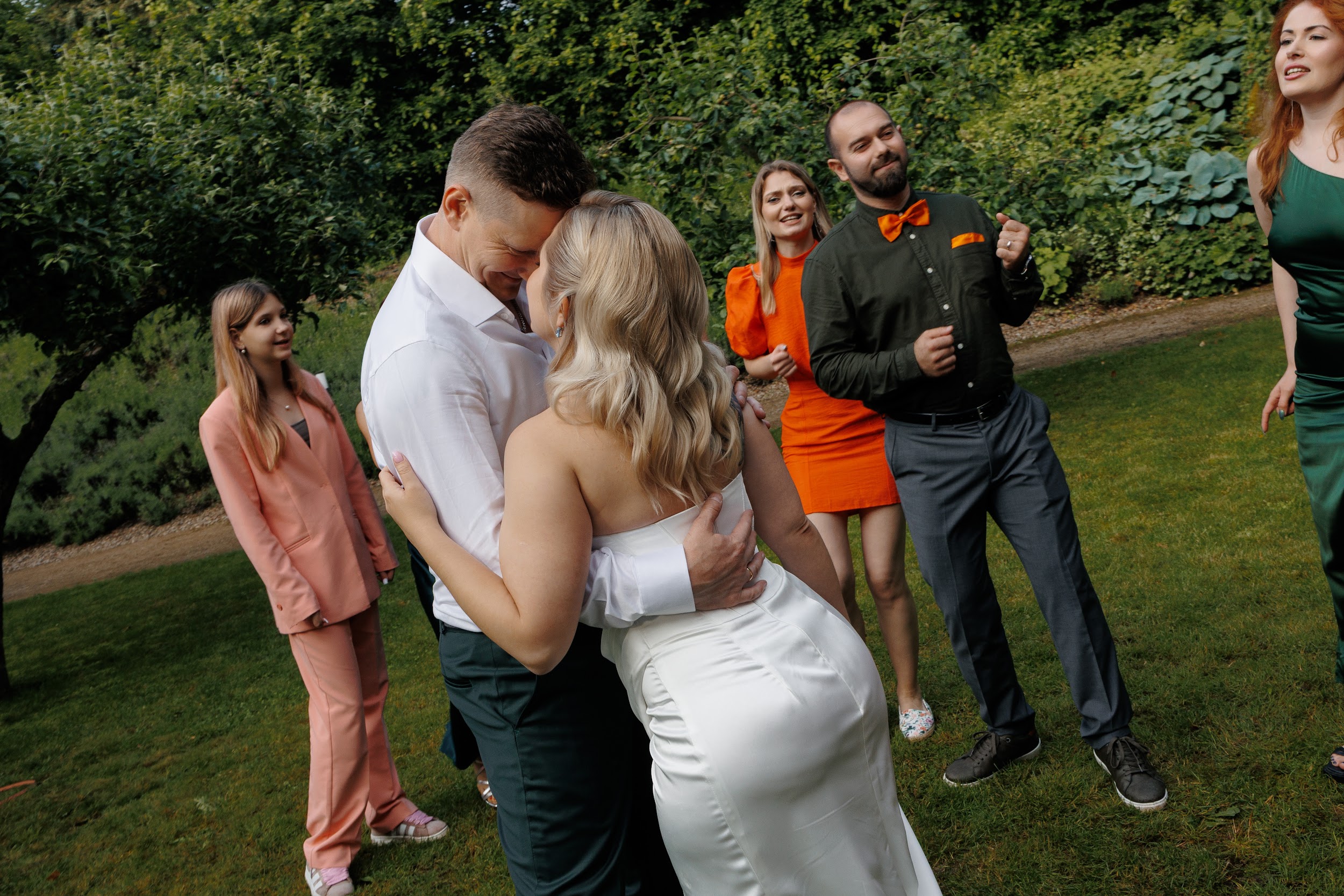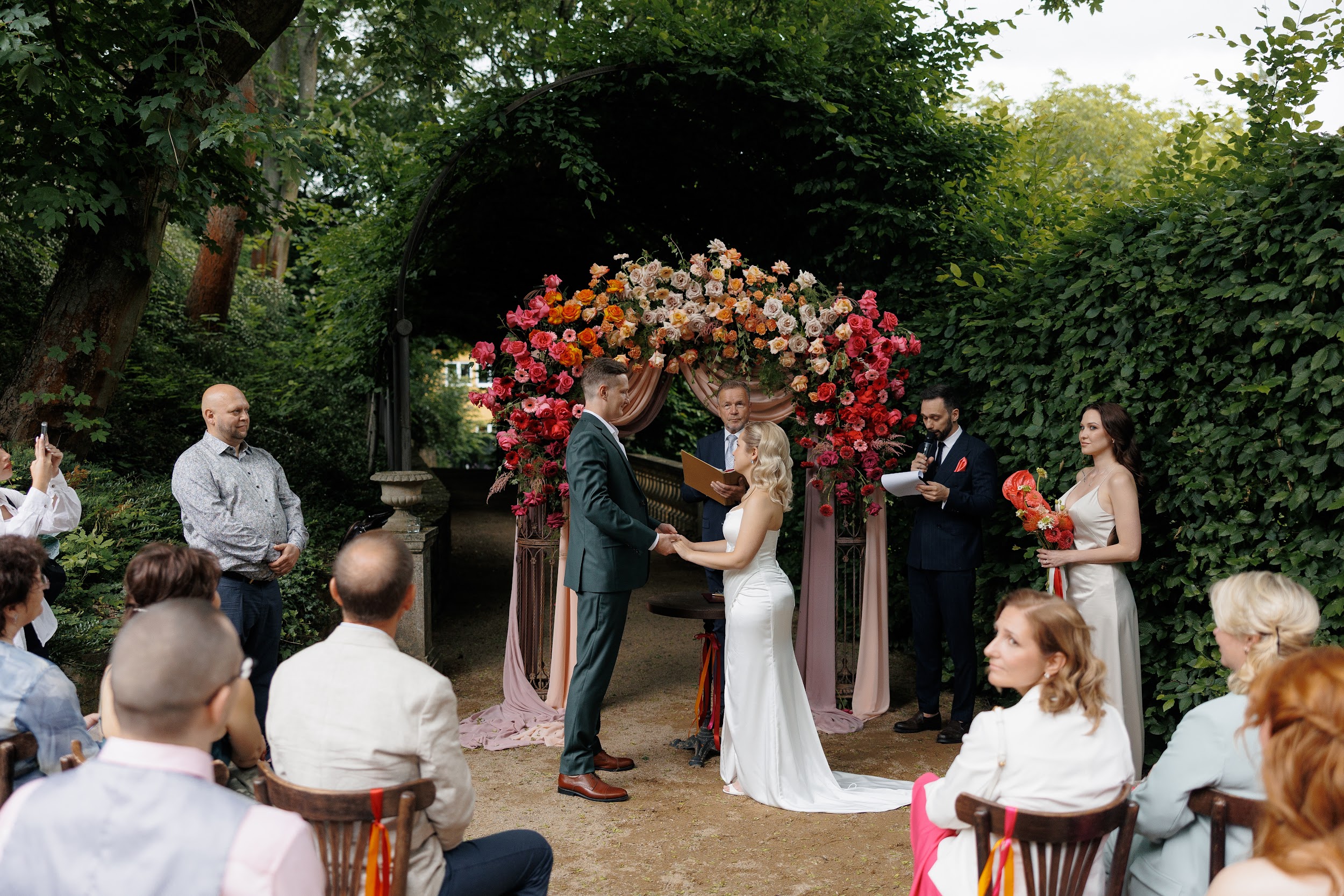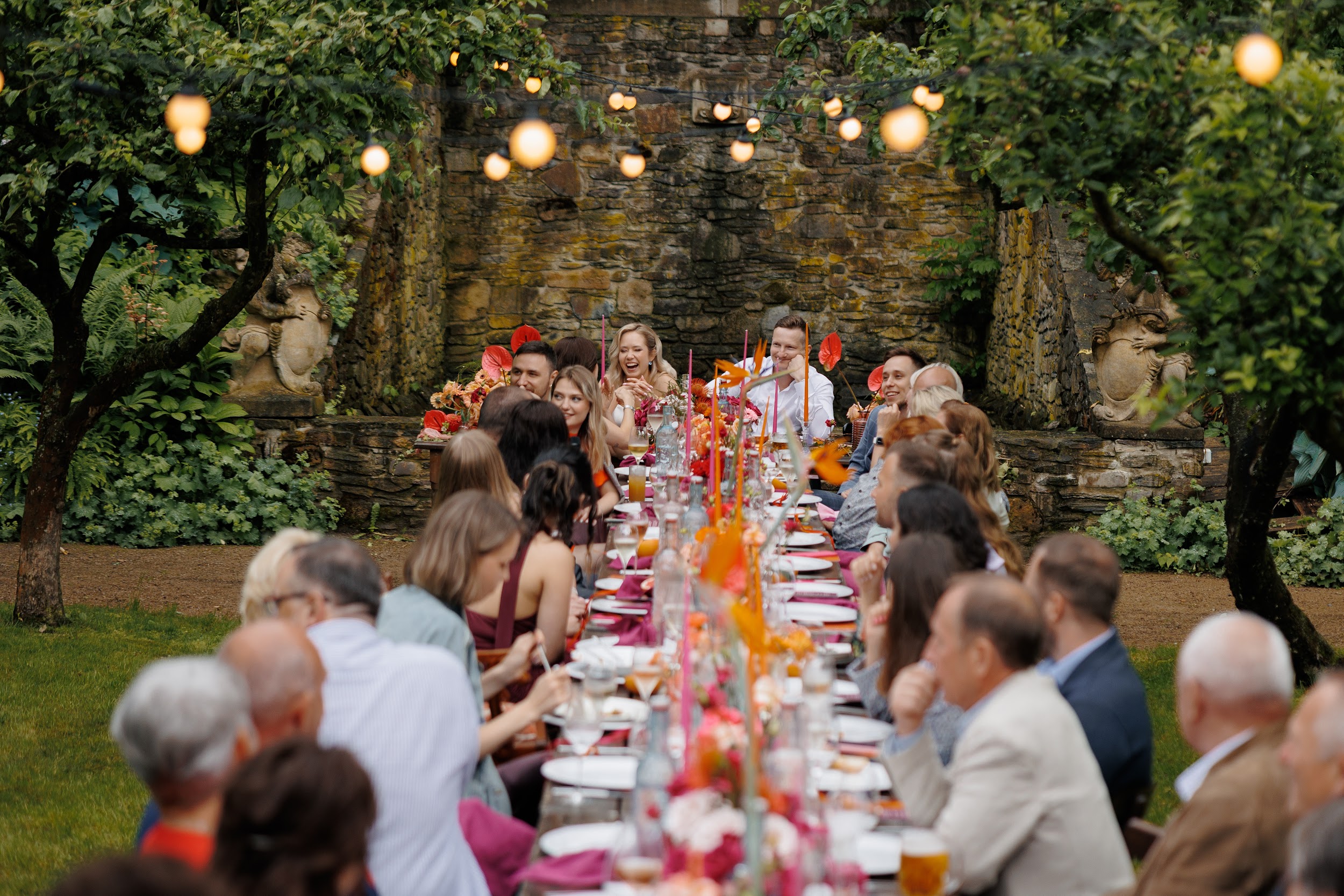 В основе этой свадьбы — лёгкость, яркость и искренность. Подготовка прошла почти невесомо: ребята с первых звонков были открыты к смелым решениям и полностью доверились процессу. Вместо привычной пастельной палитры мы выбрали насыщенные цвета, добавили в декор грейпфруты и сделали ставку на живость, летнее настроение и энергию праздника.