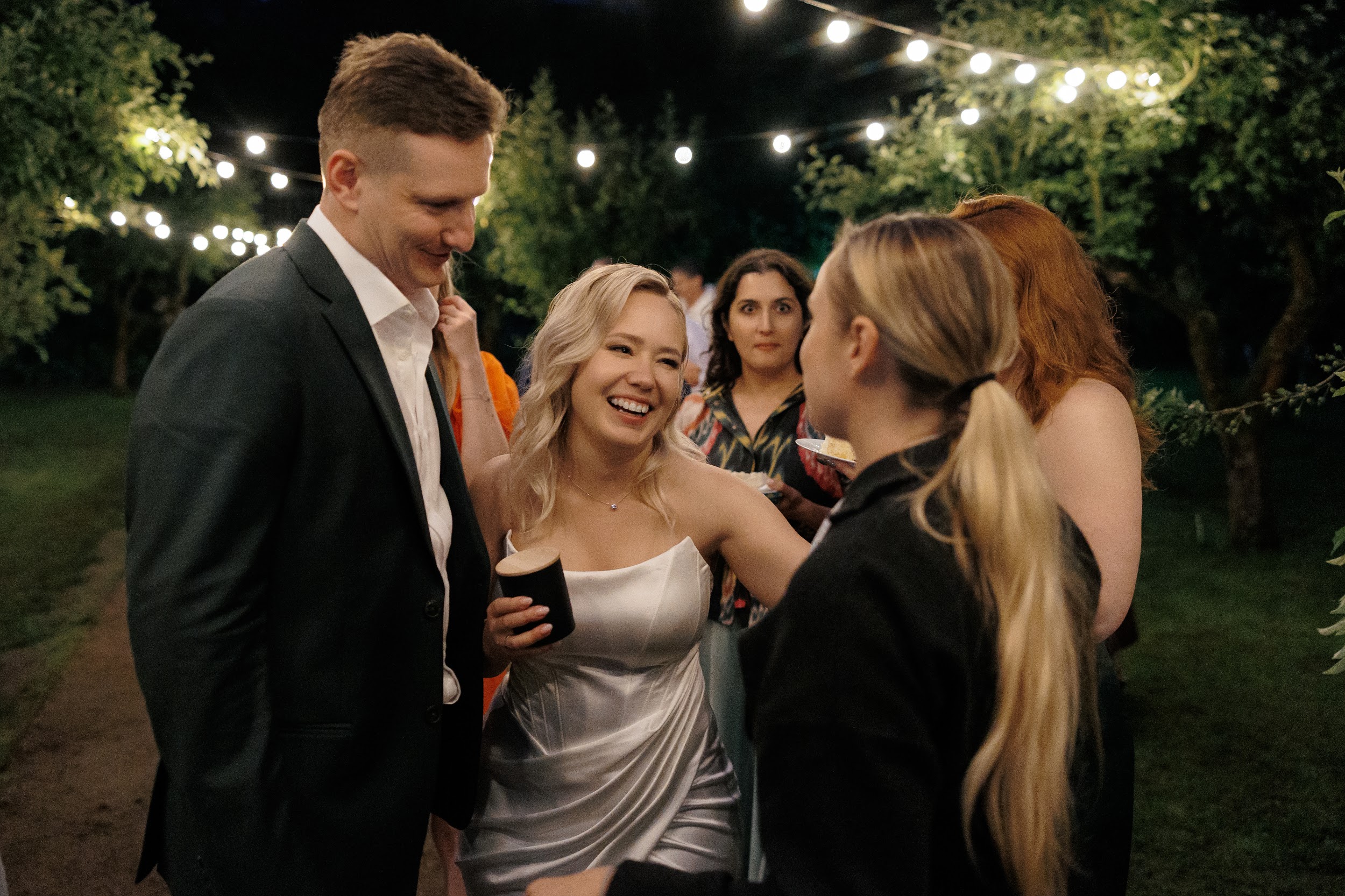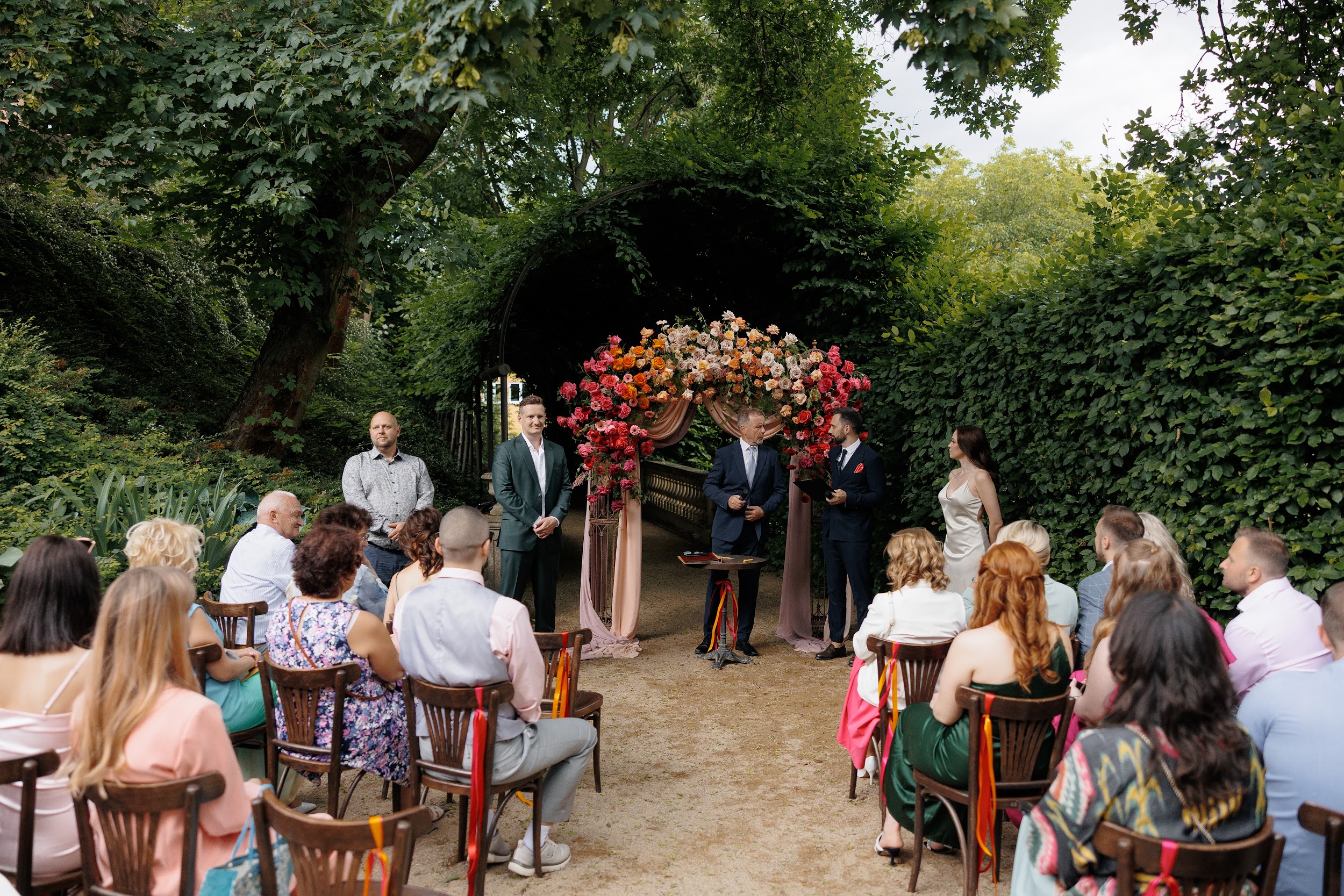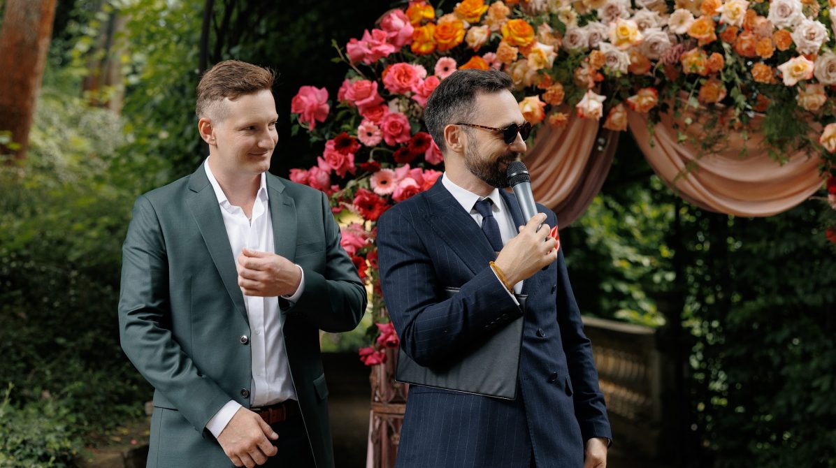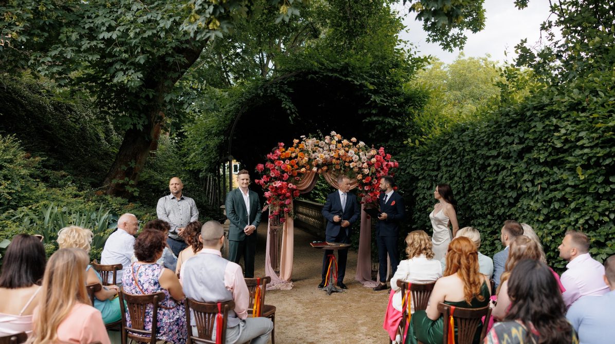 Церемония и банкет проходили в саду замка Savoia — месте, где история встречается с природой. В день свадьбы небо неожиданно разразилось ливнем, но даже дождь не смог помешать торжеству. Всё сложилось как будто по волшебству: к началу церемонии небо прояснилось, и праздник продолжился в тёплой атмосфере лета.