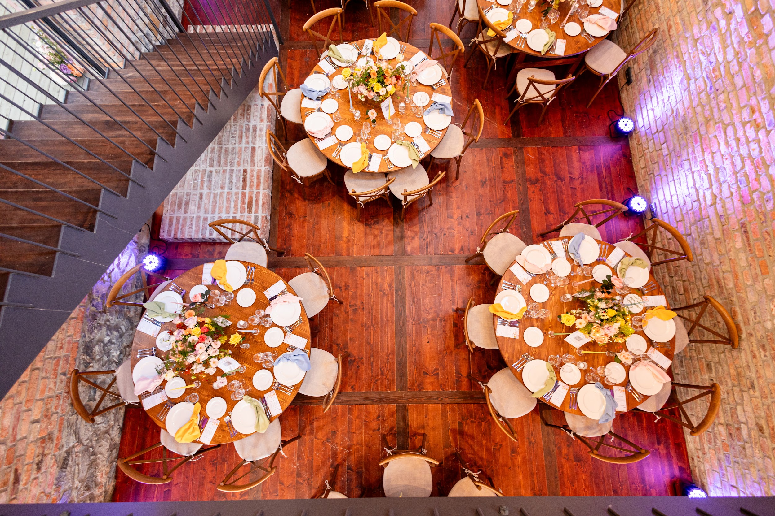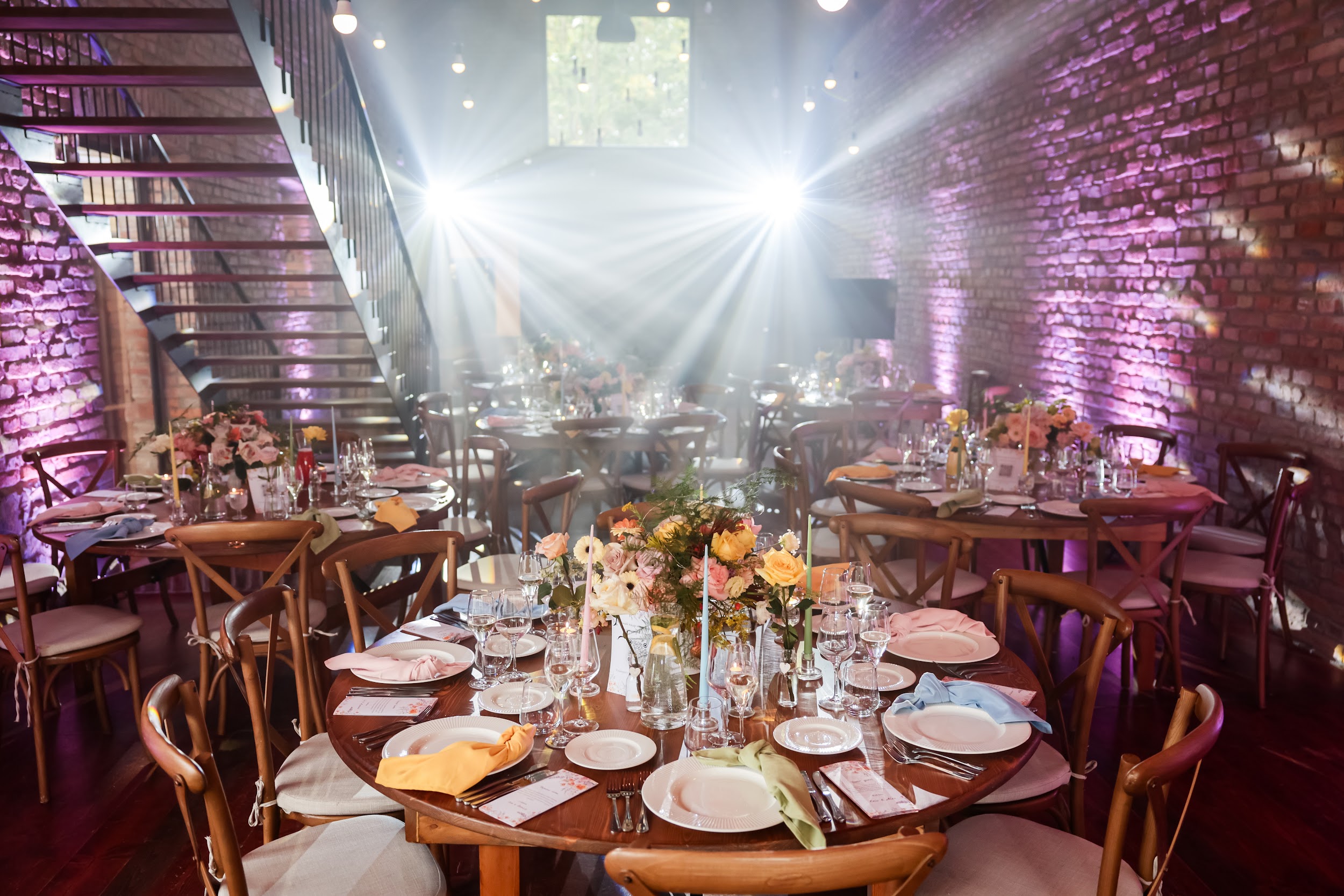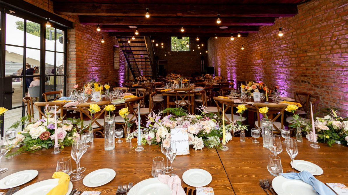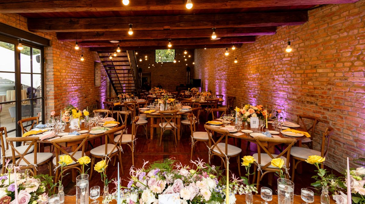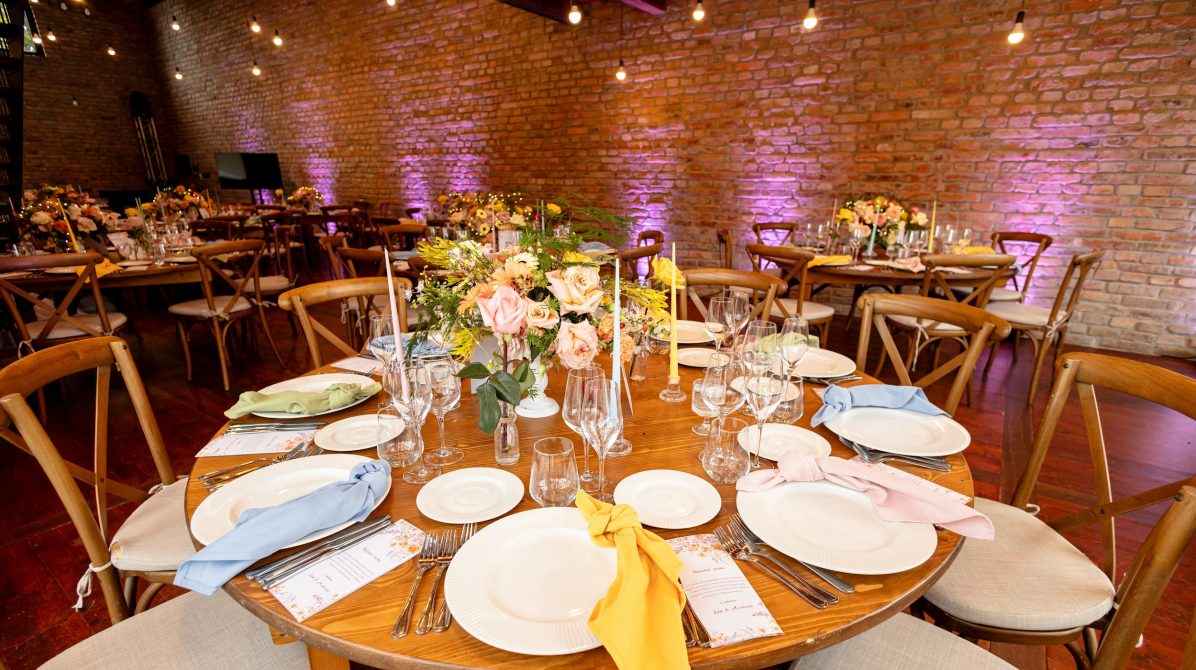 Основой оформления стала идея яркой свадебной концепции с акцентом на цвет, лёгкость и современную эстетику. Декор строился на сочетании насыщенных и пастельных оттенков: цветные салфетки, живая флористика с акцентами жёлтого, розового и зелёного, тёплый свет и натуральные материалы. Пространство выглядело живым, динамичным и при этом гармоничным — идеальное решение для современной свадьбы в Чехии. Каждая деталь — от сервировки до композиции столов — была частью единого визуального сценария.