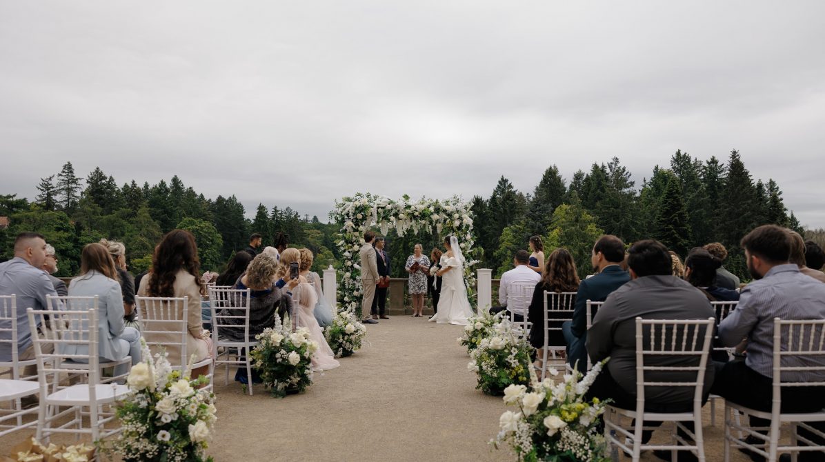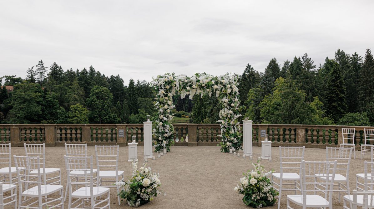 Эта свадьба — пример того, как можно соединить два мира: естественную красоту природы и торжественность исторической архитектуры.