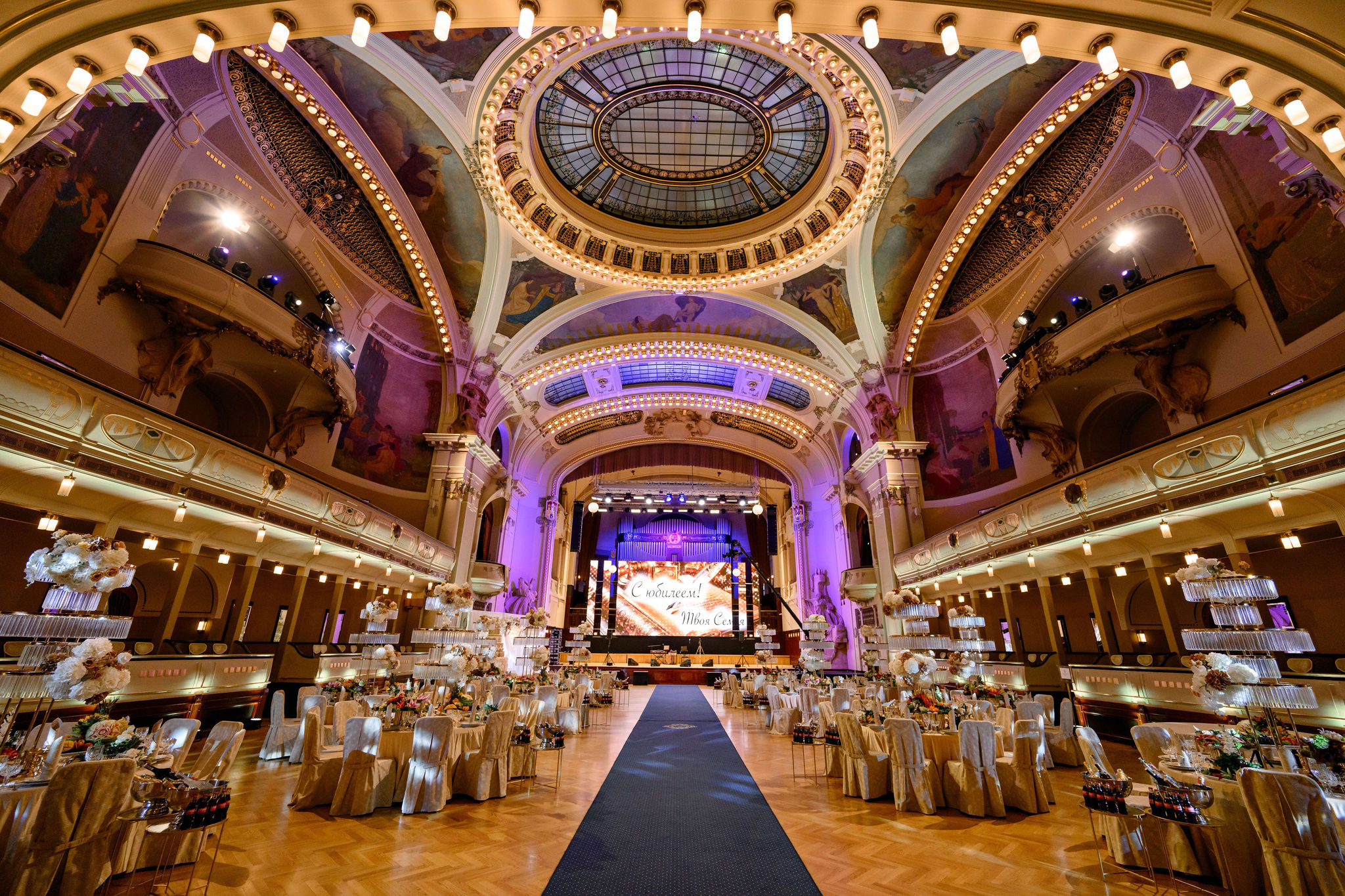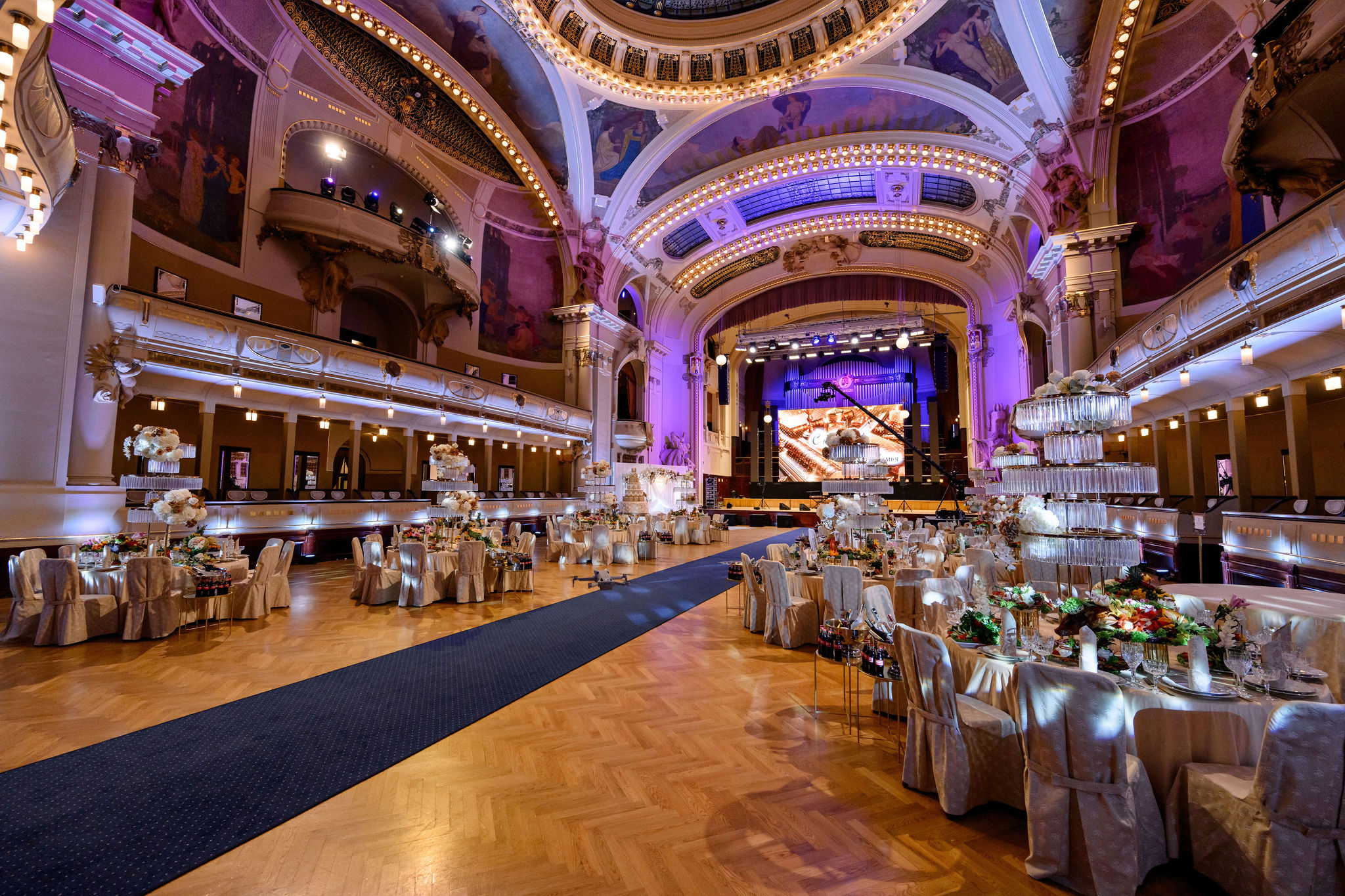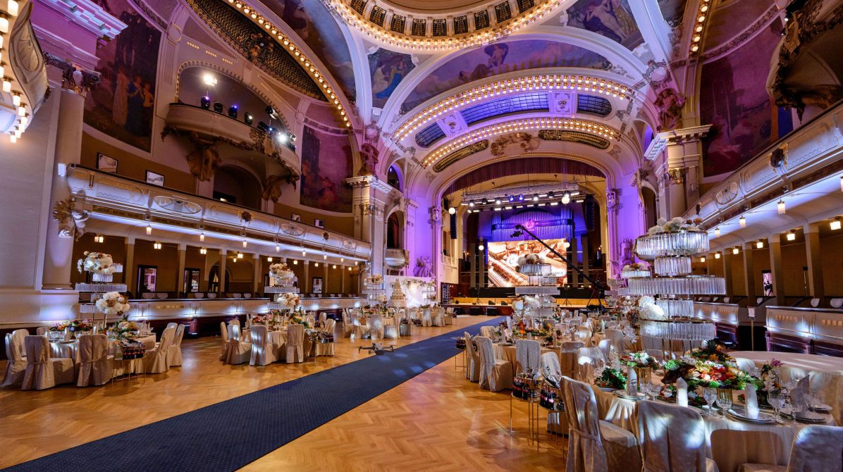 Концертный зал Obecní dům — это архитектурная жемчужина ар-нуво. Высокие своды, расписанные потолки, массивные хрустальные люстры, статуи и фрески создают впечатление, будто вы оказались в королевском дворце. Обычно здесь звучит классическая музыка и проходят престижные концерты, но на этот раз зал полностью преобразился и стал сценой для невероятного семейного торжества.
