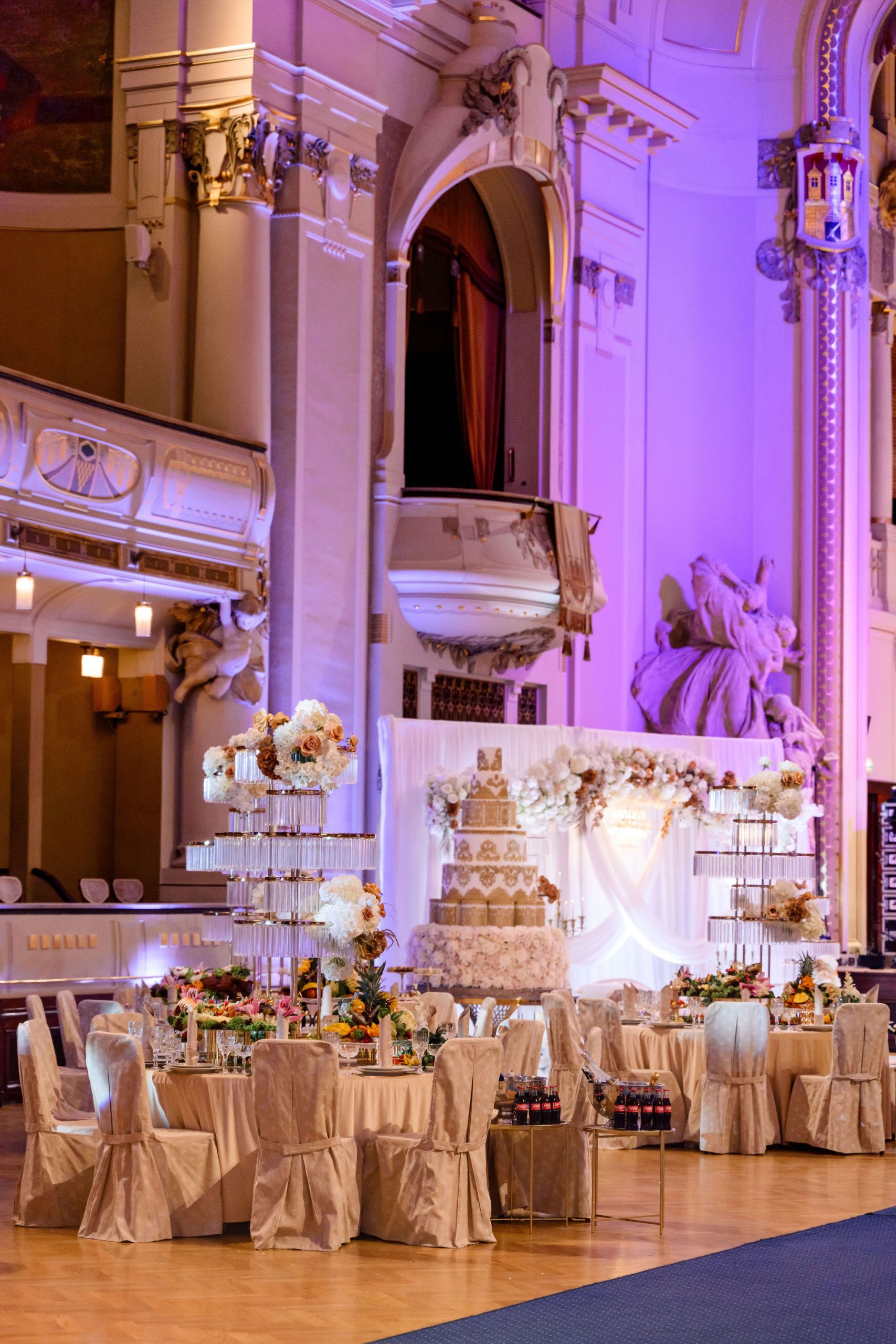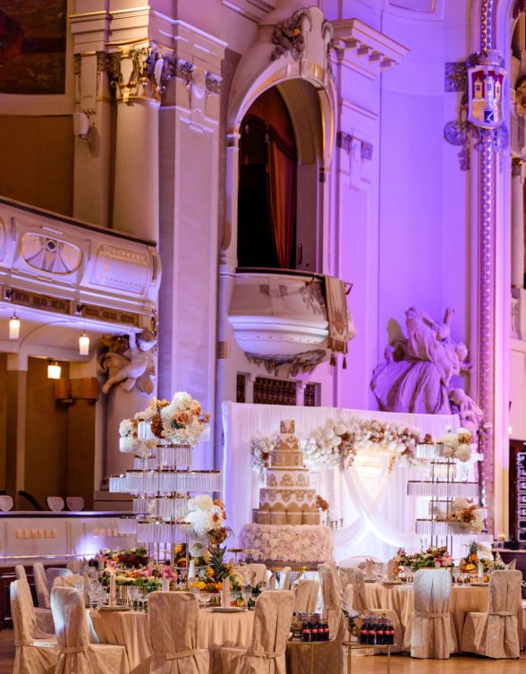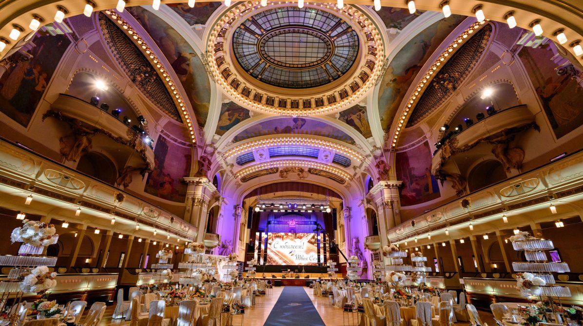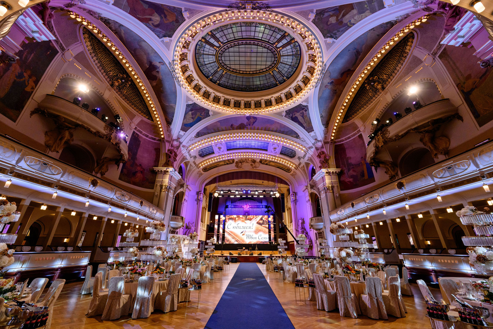 Концертный зал Obecní dům — это архитектурная жемчужина ар-нуво. Высокие своды, расписанные потолки, массивные хрустальные люстры, статуи и фрески создают впечатление, будто вы оказались в королевском дворце. Обычно здесь звучит классическая музыка и проходят престижные концерты, но на этот раз зал полностью преобразился и стал сценой для невероятного семейного торжества.