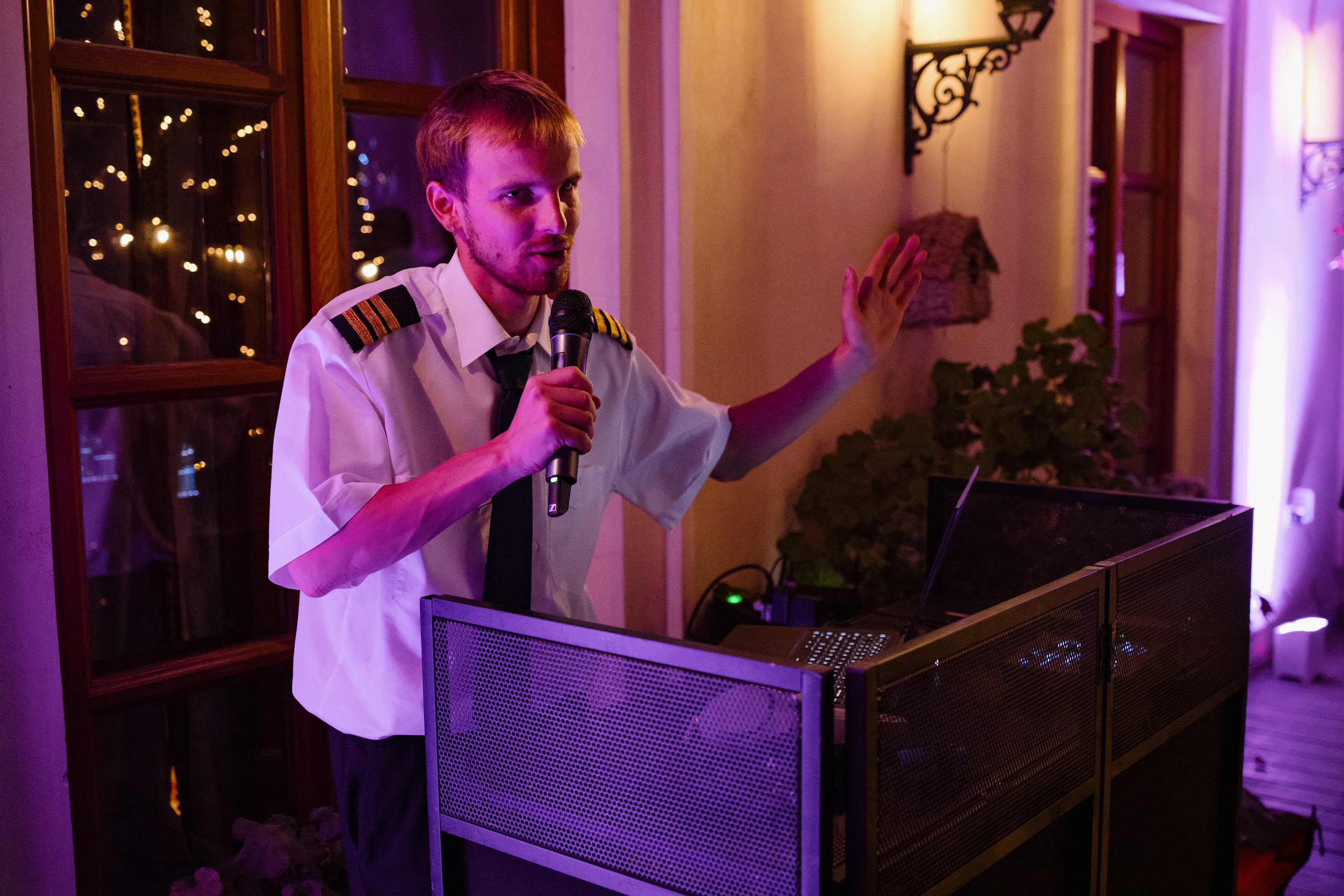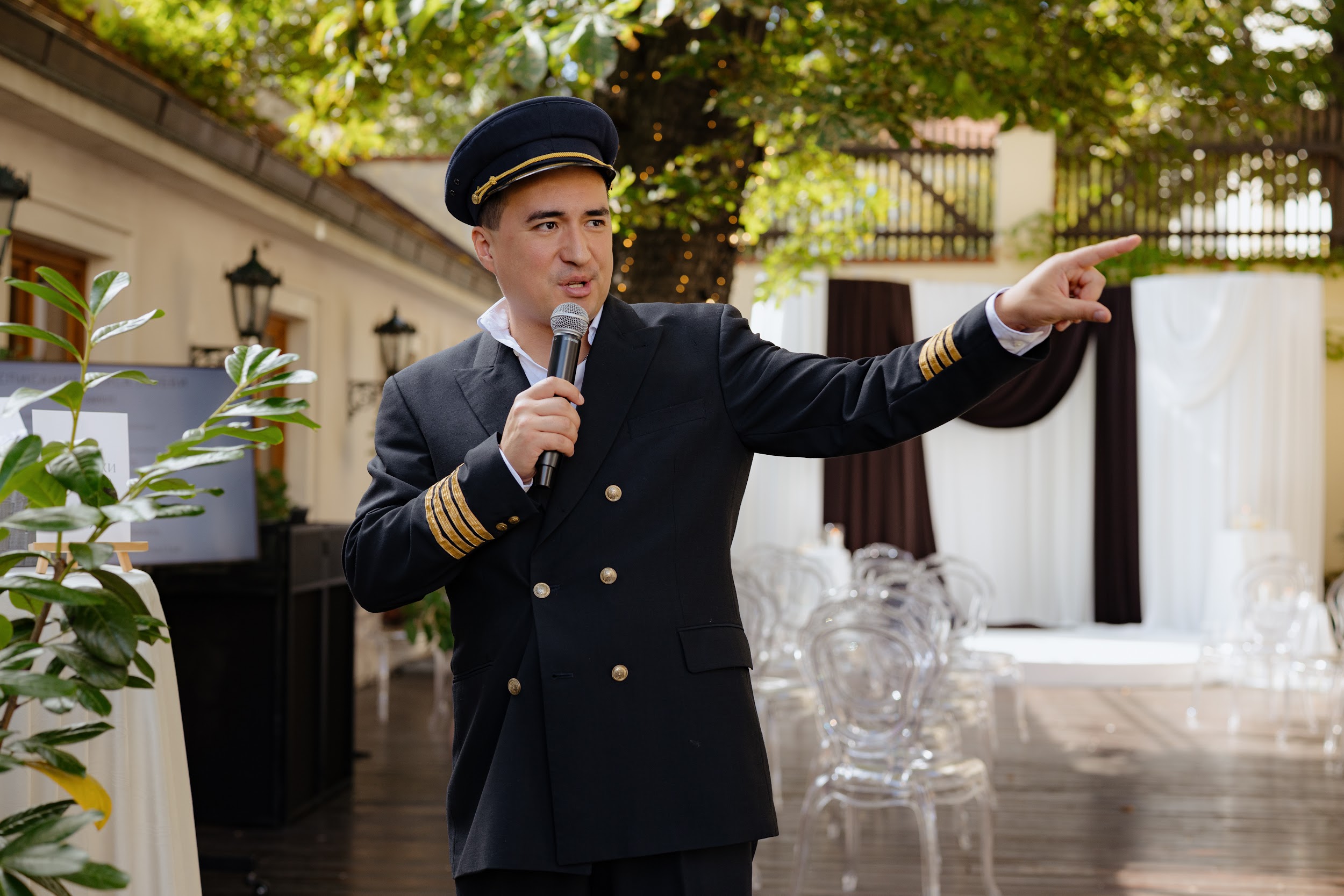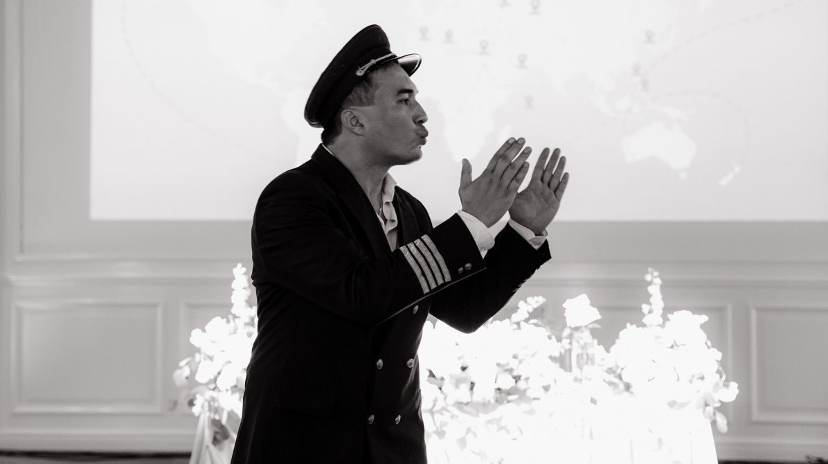 Концепция была выстроена как иммерсивная постановка: гости не наблюдали, а проживали процесс вместе с парой. Свадьба превратилась в живой театр, где пространство, музыка, свет и действия раскрывались как последовательные сцены. Наша команда стала частью истории — мы работали в образах, взаимодействовали с гостями и мягко вели их через весь вечер.